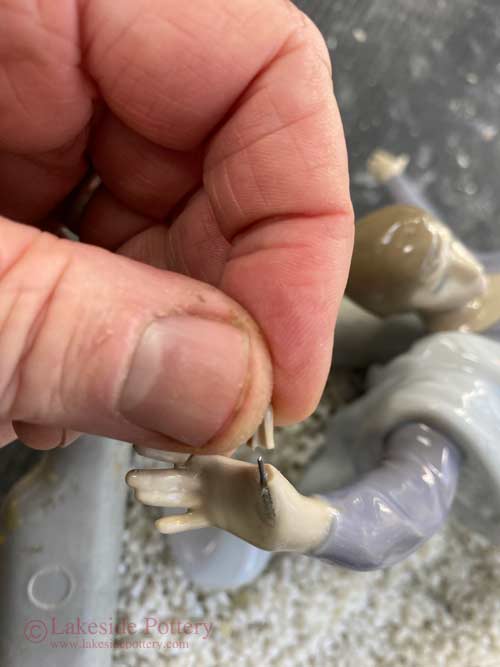 Mending sculpted thumb over a metal pin