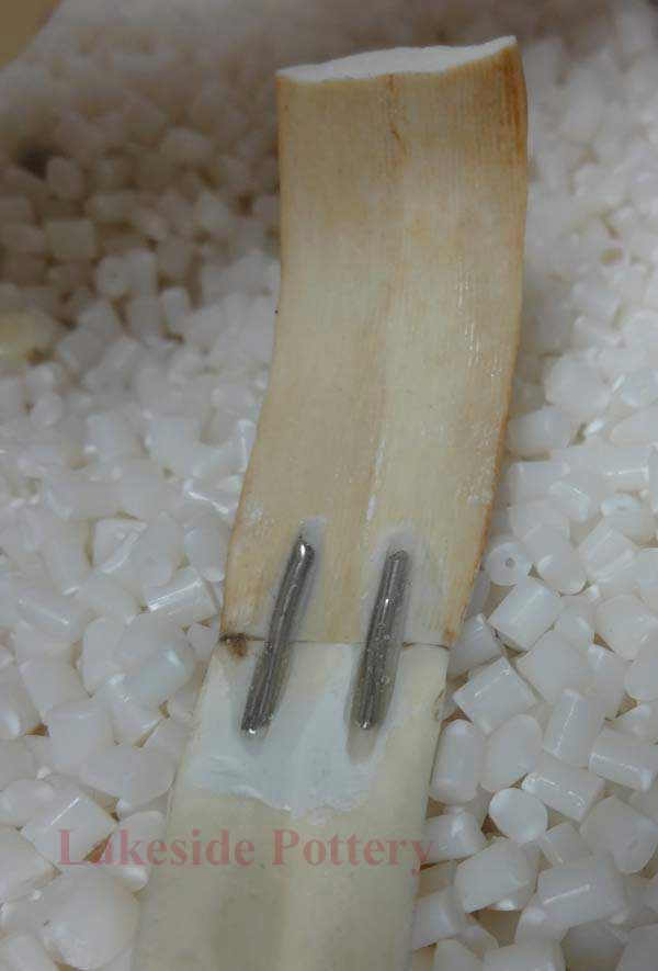 Metal pegs placed and glued in place for proper mechanical strength