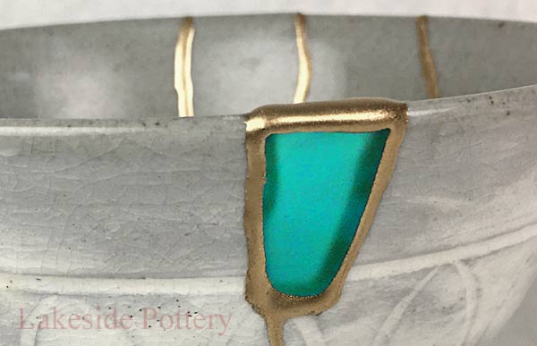 23.5K gold powder applied on a Kintsugi repaired bowl