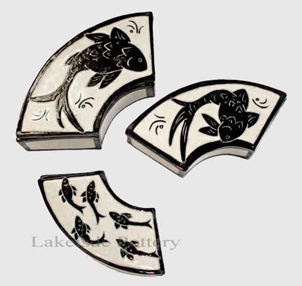 Finished Sgraffito tiles: