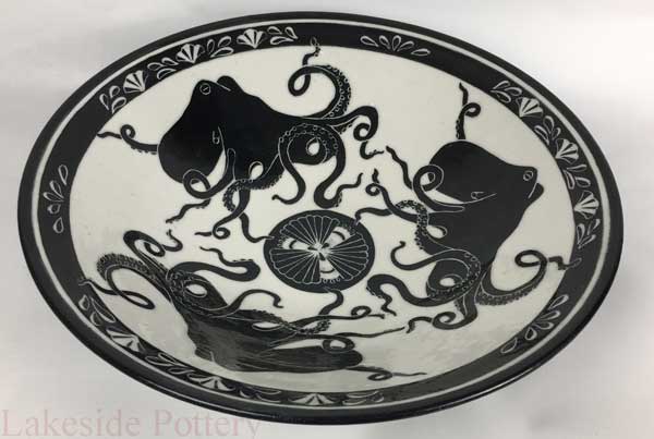Sgraffito octopuses bowl