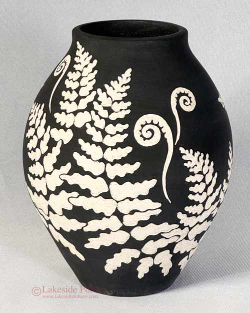 Sgraffito fern design vase