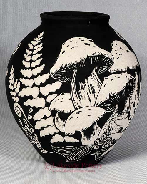 Sgraffito mushrooms vase