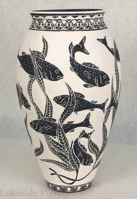 Sgraffito fish vase