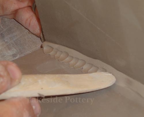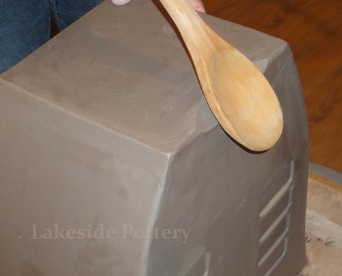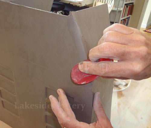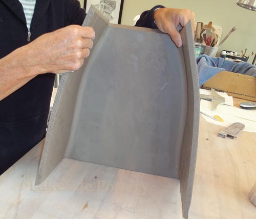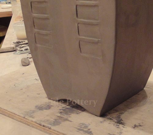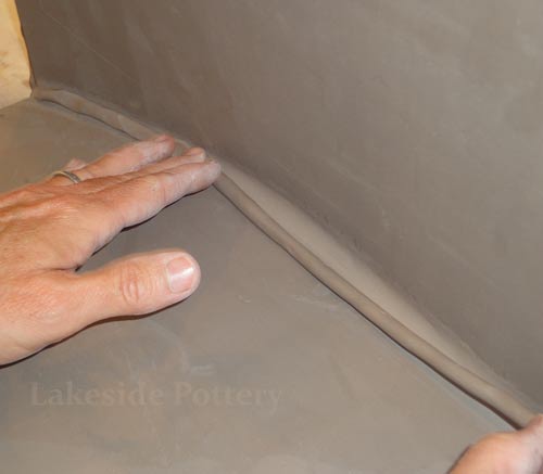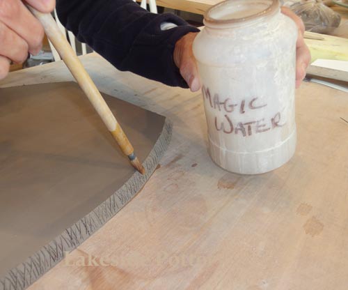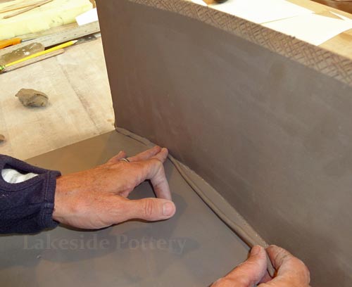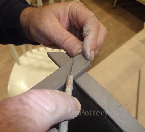 All connection points are required to be mitered at 45 degrees, scored and applied with magic Water (see link for magic Water recipe). Using slip only may not be good enough for large forms and the seam might separate during drying or firing.