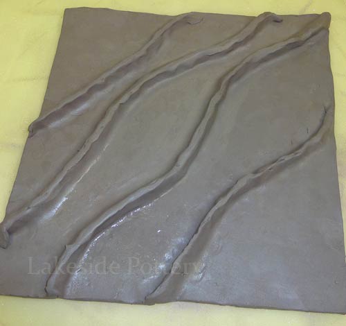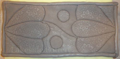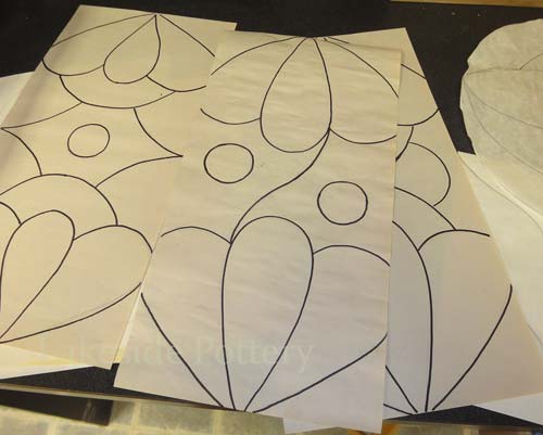 Design options are infinite and can be placed on a thin paper like "newsprint". Prepare a slab slightly thinner that the typical 1/4" (see Making Tiles tutorial).