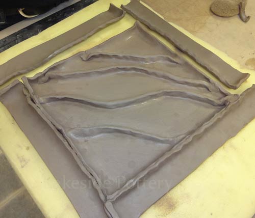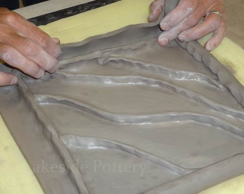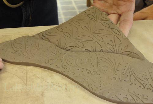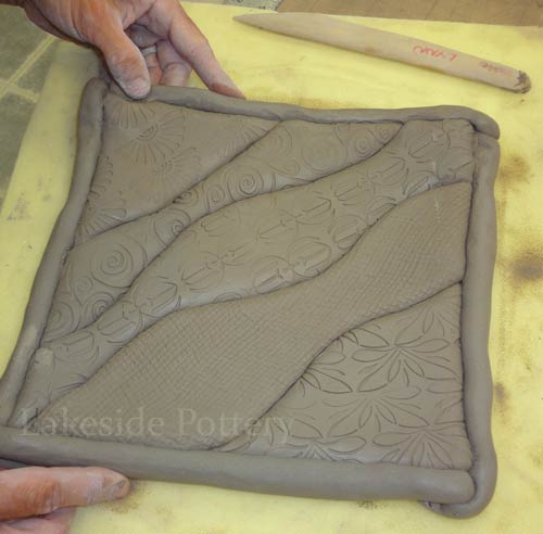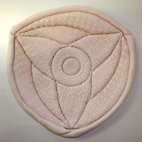 Ceramic clay quilt art can be designed and used for wall mount display or designed as a functional serving platter or tray. In either case, it has the appearance of soft quilted fabric and through our experience, is a great centerpiece that generates conversations and wonder. The pattern can be designed to mean something for each customer (e.g., initials, hobby, company logo, family crest, favorite sports, etc.). We can design it to order and glaze to numerous color options. If the order is for hanging art, we build in provisions for hanging or can shape it to a bowl, platter or a tray with or without feet. The tutorial for this hand building pottery lesson is below and will walk you through the process of "Quilting With Clay" step by step.