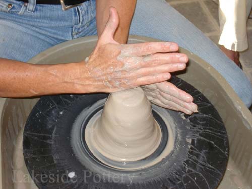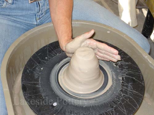 The tutorial below will guide you step by step illustrating how to use your body properly throwing a pot on the wheel. Always start small. This demo is with a 3 lbs clay and starting with 2 lbs will be a wise choice if you are a beginner.