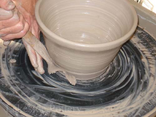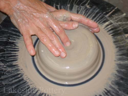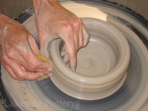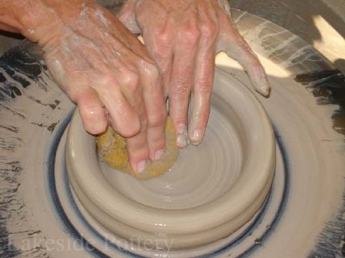 26. Raise the wall - squeeze clay w/ fingers using a sponge. Use fingers tips only. Hands touching