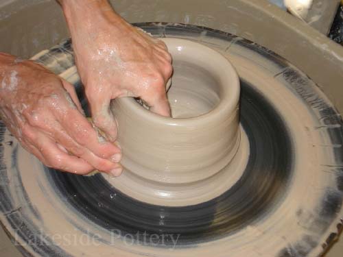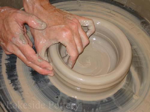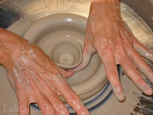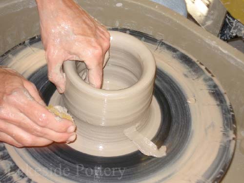 37. Shaping - Push inside of cylinder out while outside hand gently supports clay