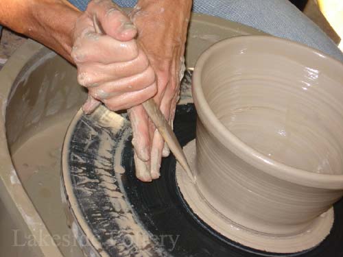42. Under cutting -Clear clay from bat for easy access to the cutting wire
