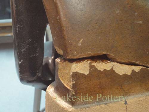 This 200 lbs Spring or Shona stone sculpture came to us very broken. The objective was to put the sculptures together using metal rods to insure proper structural integrity. Than, we had to sculpt, with clay, the missing pieces, fire them in a kiln and cement them in place. All cracks, chips and dings had to be filled, polished and treated. The stone multi-colors required painting details and the glazing / waxing had to match natural stone luster. Stone luster needed to be absorbed by the added materials / fillers without any build up. Any build up would have made the finished effect look like a ceramic vessel and not a stone. Note: This repair is not suitable for outdoors use.