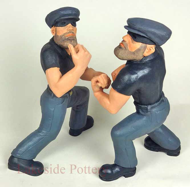 Google Review: My wife bought 3 sculptures and unfortunately I broke two of the 3 men, each in many pieces. Lakeside pottery put them back together so they could join their brother. The repair exceeded my expectation in every way. Now it is impossible to tell which 2 were repaired. I am truly impressed and grateful. Jim